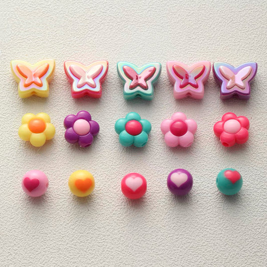 Mixed-Style Bead Strand with Colored Hearts, Butterflies and Flowers