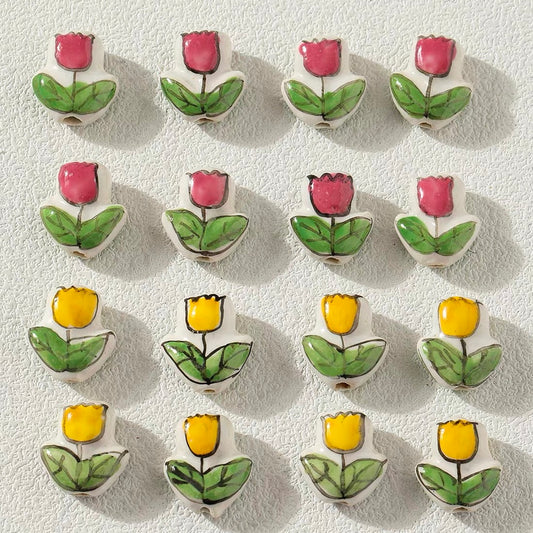 Hand-painted Ceramic & Colored Glaze Beaded String with Enamel
