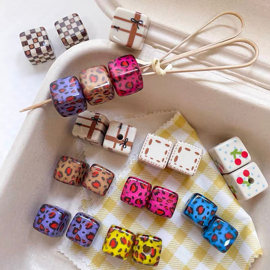 Vintage Coffee-colored Leopard Print Acrylic Square Beads