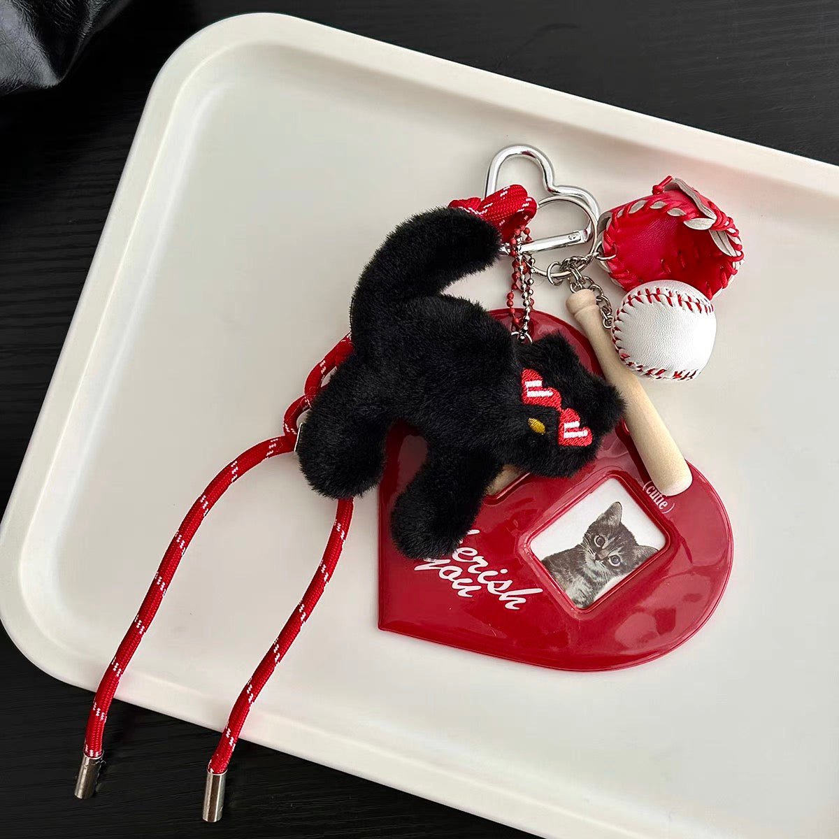 Plush Kitten & Big Heart Photo Card Holder Bag Charm & Phone Chain